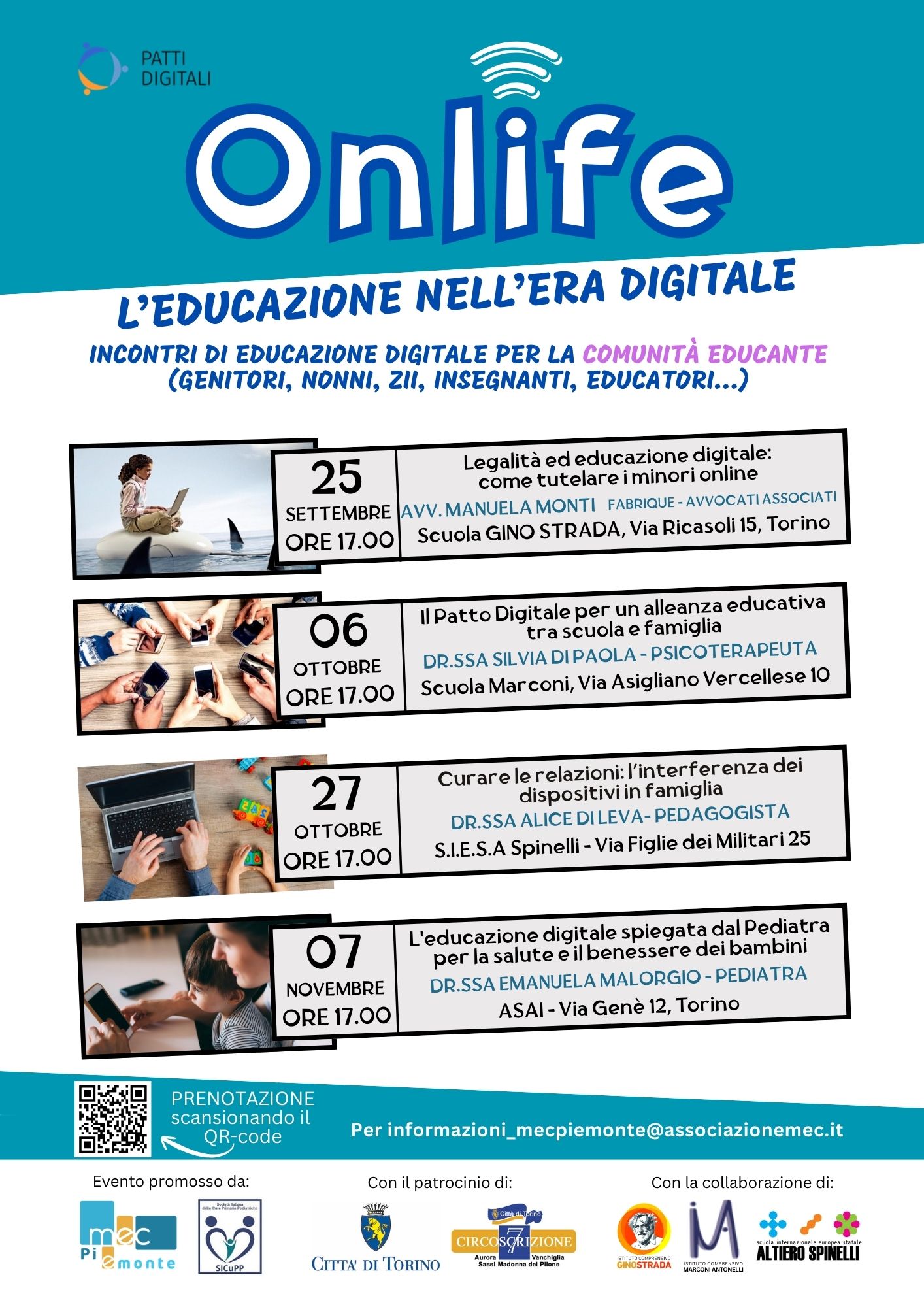 Il Ciclo di conferenze è promosso da MEC-PIemonte. Media Educazione Comunità è un’associazione di Promozione Sociale formata da educatori, formatori, giornalisti, esperti di media digitali, tecnici nel campo della comunicazione e si è costituita per promuovere percorsi di consapevolezza critica sui media.